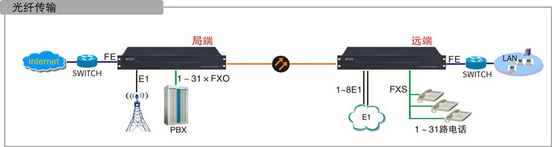 ◆ 结构合理,性能稳定 采用19英寸1.5U标准机箱6槽插卡式结构,扩容维护方便 设备具有6个盘卡插槽,其中1个为主控插槽+4个业务插槽+1个扩展插槽。4个业务插槽可任意混插各类语音盘、数据盘、视频盘等 ◆ 可靠性高 采用AC220V、DC-48V双重供电方式,可接蓄电池,具有浮充功能 全表面贴装工艺 完善的告警指示及话路状态指示 具有线路检测和故障定位功能 统一纳入SOC-NM2005网管平台,提供完善的网管功能,为系统的运行和管理提供可靠的保障 ◆ 组网灵活 多种传输方式:包括E1传输、光纤传输、HDSL传输,点对点/星型/链形结构 通过多E1传输时,采用MP技术(线路负载平衡)将多E1信道捆绑传输各种业务 集成PDH、PCM、PBX等多重功能融于一体,应用于各种专网业务,为客户在原有传输架构上提供性价比更高的接入方案 可根据用户需求配置PBX语音交换盘,用户通过本地或局端出局 ◆ 业务丰富 丰富的数据接口:RS232、RS422、V.24、V.35(Nx64K)、10/100Base-T等 齐全的语音接口:FXO、FXS、磁石、E&M、2/4线 齐全的音频接口:高保真音频、爱峰/来邦对讲 全数字非压缩视频图像接口,且支持任何高分辨率视频信号 支持来电显示、反极计费信号
